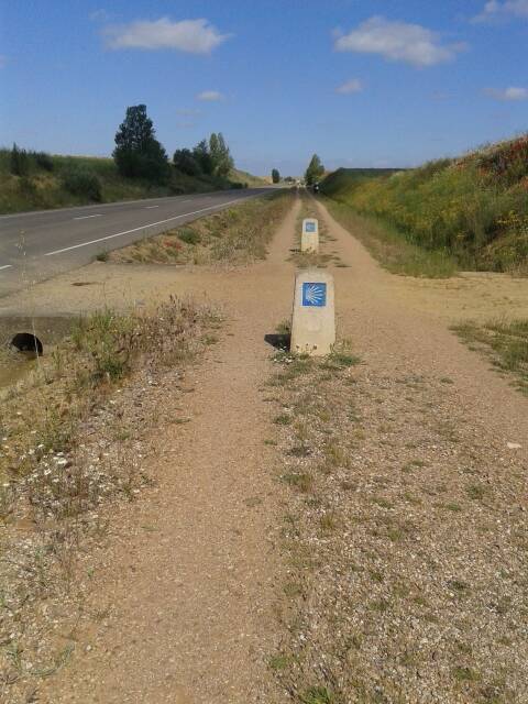 De tocht vandaag beleef ik met een dubbel gevoel. Enerzijds gemakkelijk omdat het vlak is als een biljarttafel. Anderzijds wat onaangenaam omdat we de ganse dag op een grindweg hebben gelopen, parallel met de provinciale weg. Maar steeds omgeven door tot aan de oneindige horizon reikende graanvelden. Dit is de 'tierra de campos'! (letterlijk ‘het land van de velden’)
